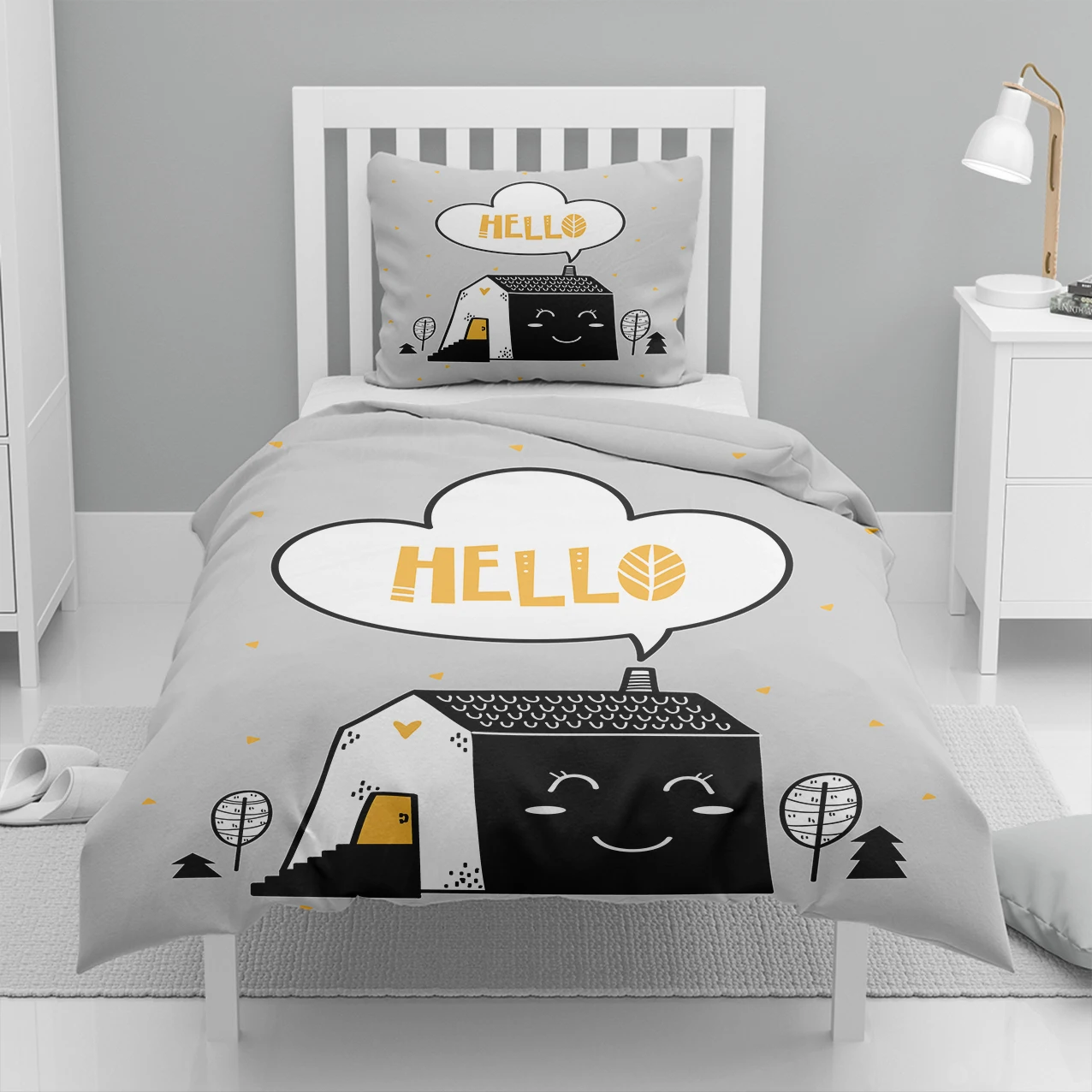 Детский комплект постельного белья, 4 шт., серый, черный, желтый