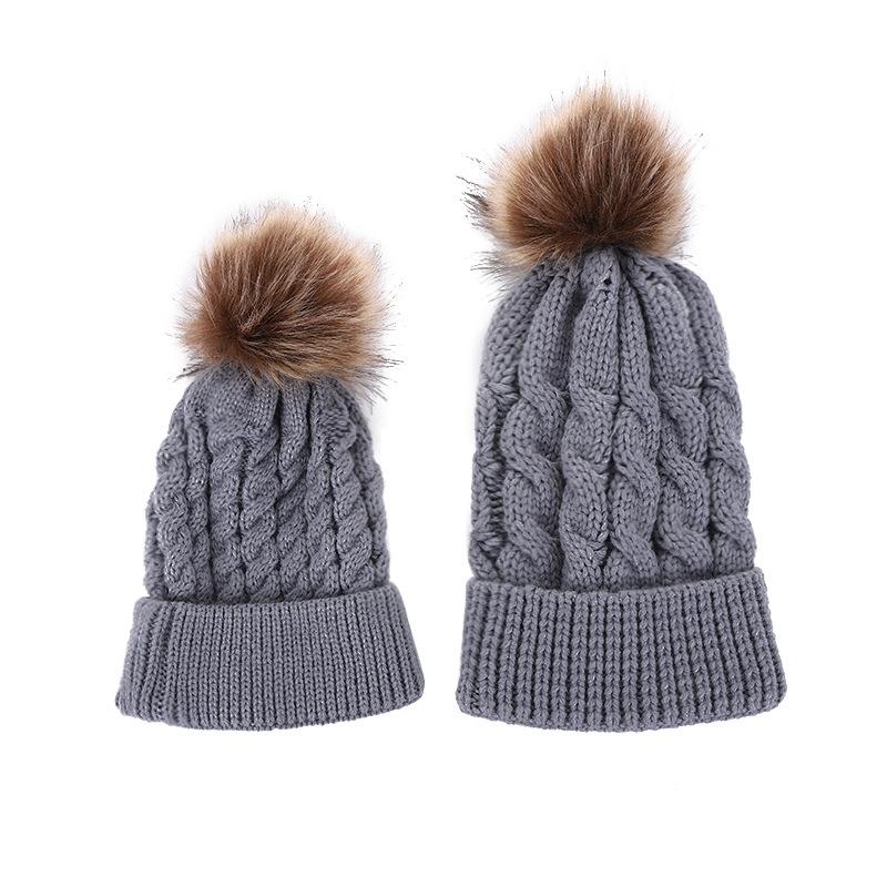 Детский костюм для родителей и детей, осенне-зимний бал, шапка из жареного теста, шерстяная вязаная шапка, модная теплая шерстяная шапка Adult серый