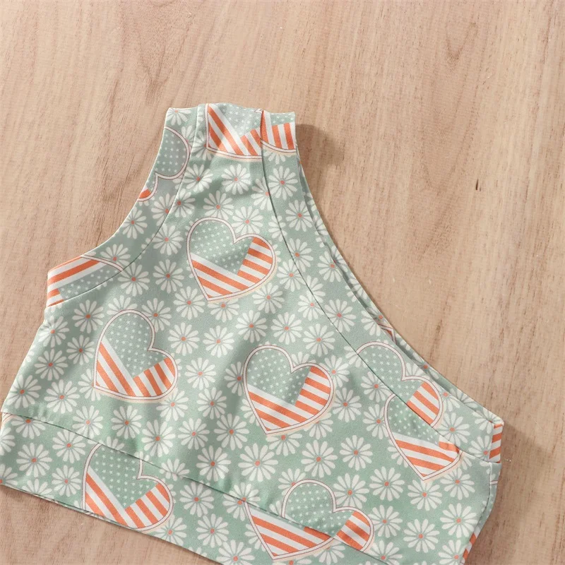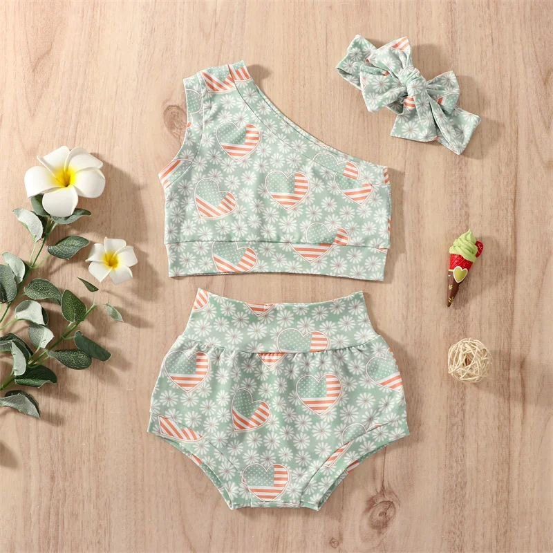 Детский летний комплект без рукавов, жилет на одно плечо с цветочным принтом