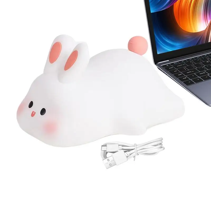 Детский ночник в виде кролика, силиконовая лампа с большим рисунком животного, милый и мягкий прикроватный светильник для малышей