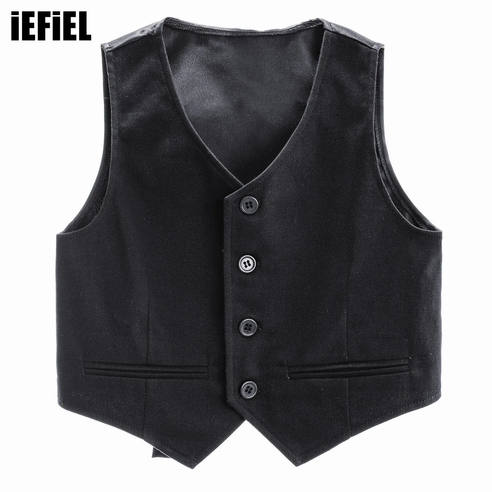 Детский однотонный жилет для мальчиков, джентльменов, жилет с V-образным вырезом, пуговицами, на задней лямке, с острым носком, для выступлений на сцене
