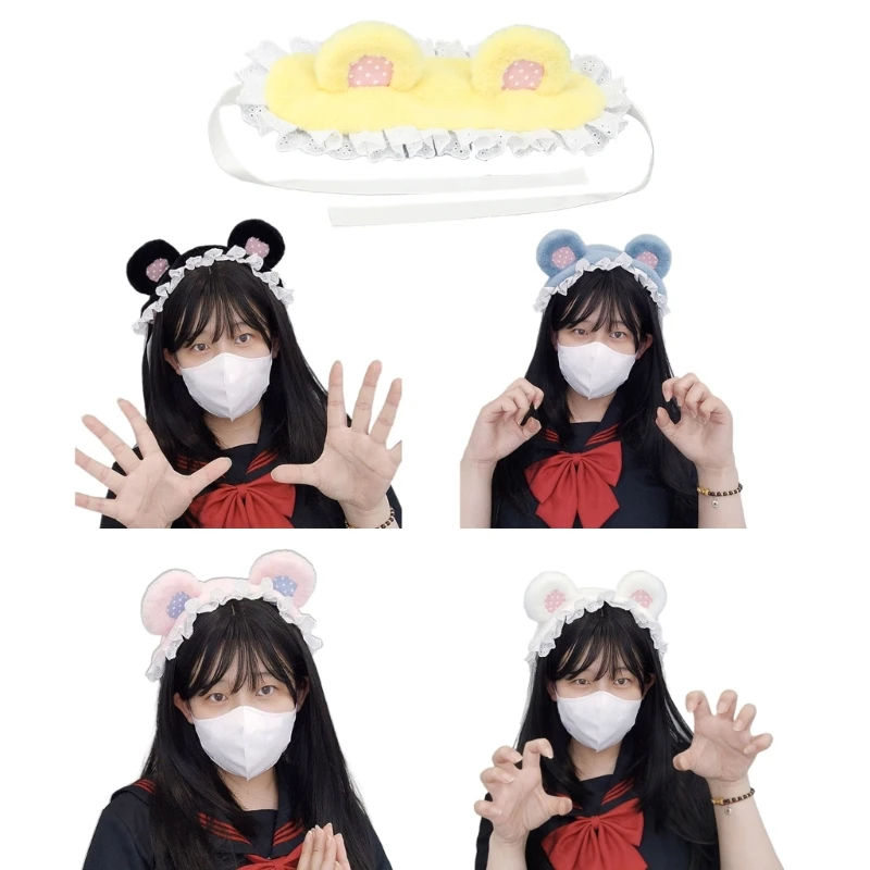 Детский плиссированный кружевной ободок в форме медведя, реквизит для костюма карнавала