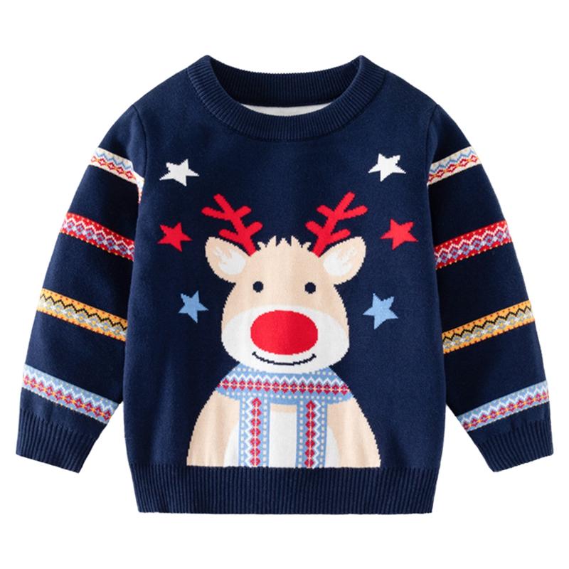 Детский пуловер с круглым вырезом для детей от 2 до 9 лет, детский рождественский свитер с мультяшным рисунком, трикотаж 120