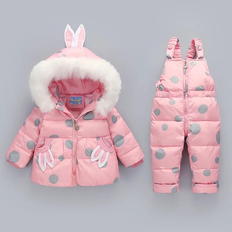 Детский пуховик, костюм для девочек, комплект из двух предметов для детей 1-3 лет, теплое зимнее пальто для малышей, милая зимняя одежда для маленьких детей 90 розовый