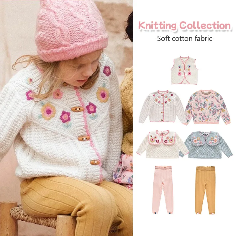 Детский свитер 2023AW LM этнический стиль плотный вышитый цветок с квадратным вырезом пуловер теплый вязаный свитер