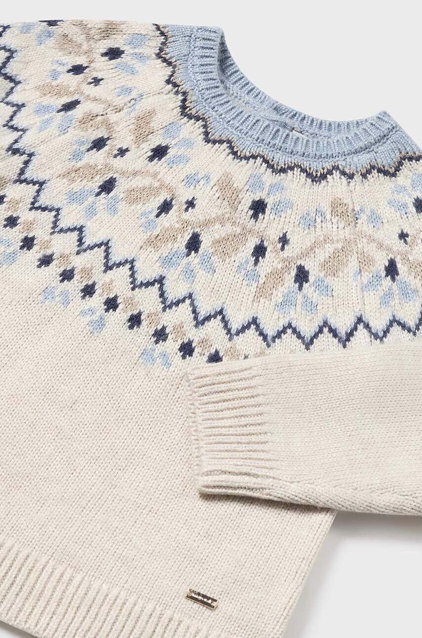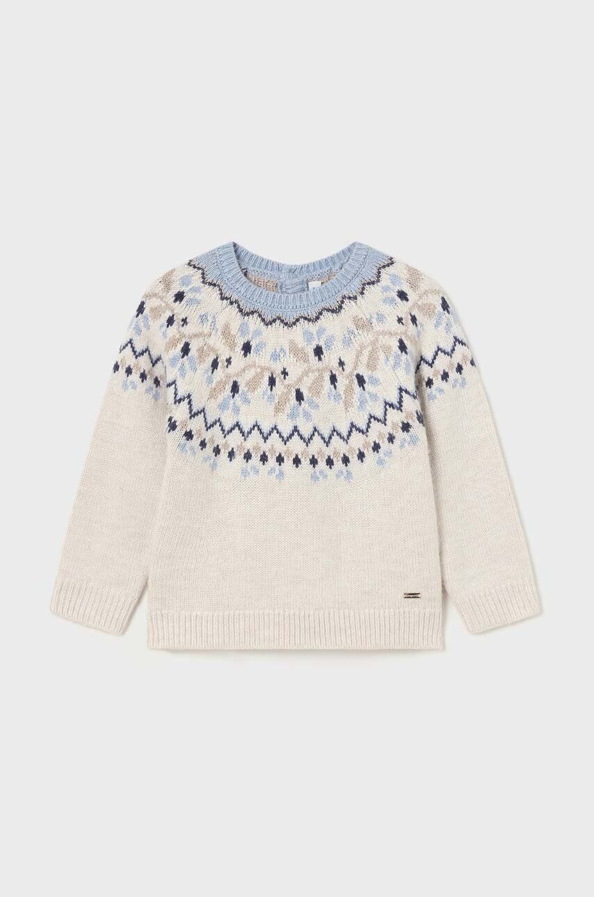 Детский свитер Mayoral. С закругленным вырезом, выполнен из трикотажа с аппликацией закругленного выреза.