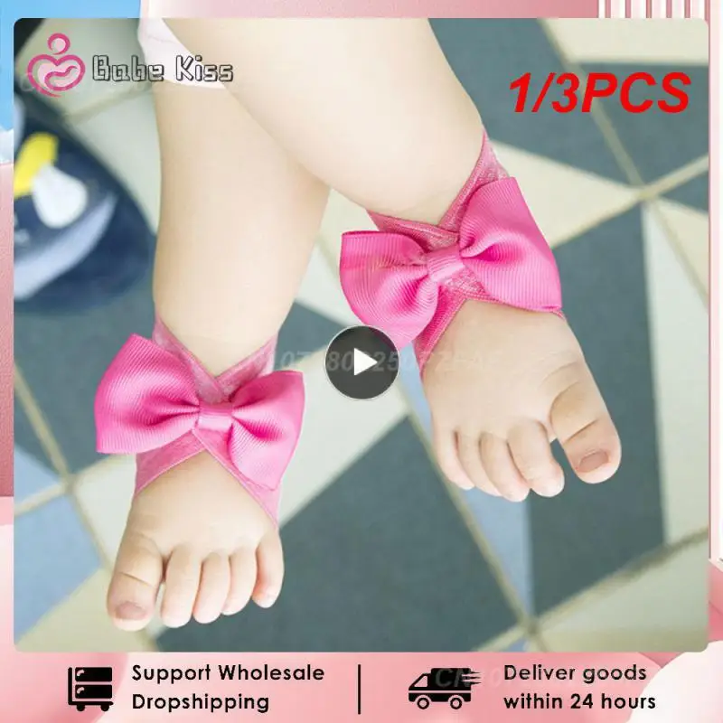 1/3PCS Baby Feet Flower Ribbon Elastic Newborn Barefoot Bowknot Decoration Gift For Solid Color Toddler Photo Props