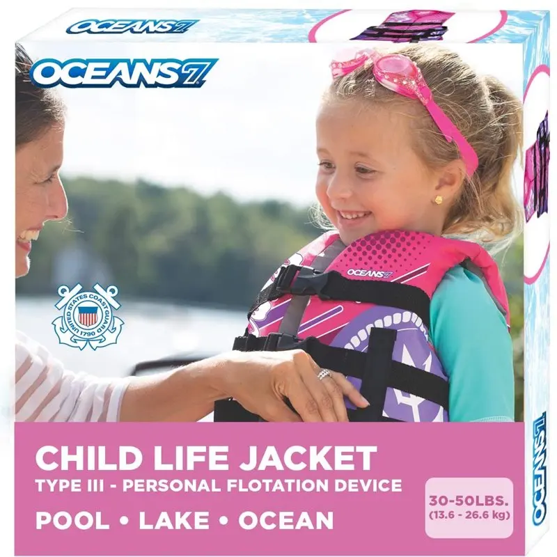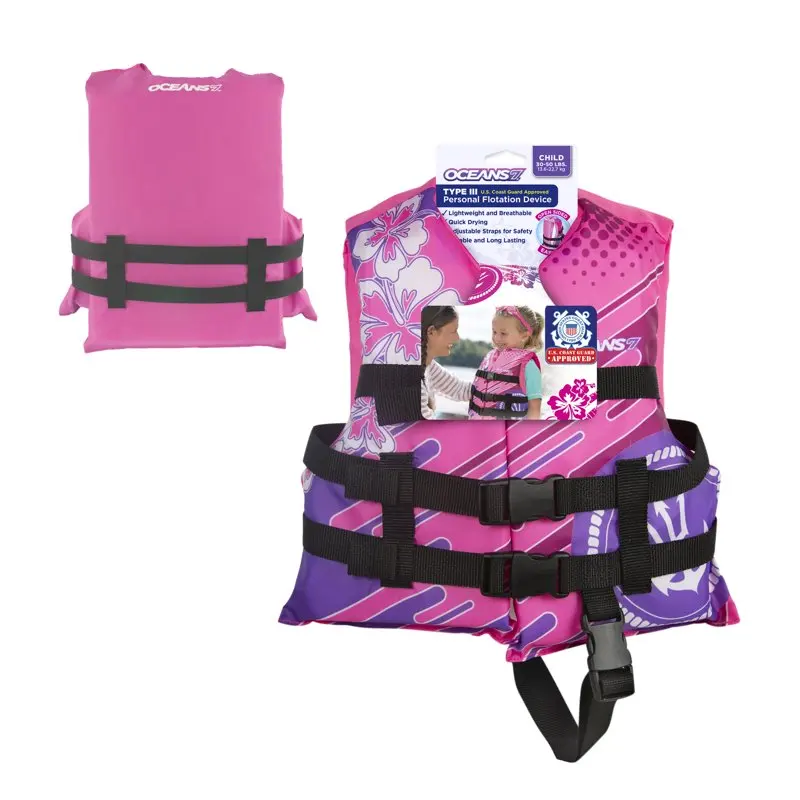 Детский спасательный жилет с открытыми боками, прочный, легкий, 30-50 фунтов, розовый/фиолетовый