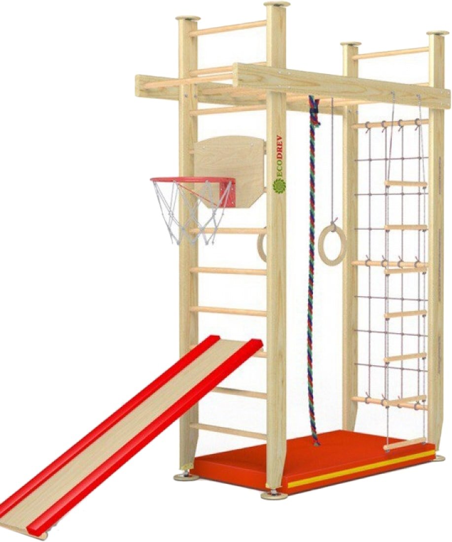 Детский спортивный комплекс Ecodrev Крепыш П-образный с турником, сеткой (бежевый, полный)