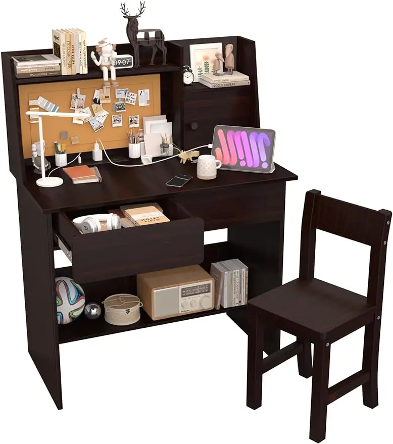 Детский стол и стул SFDOU эспрессо, детский компьютерный стол с ящиками и полкой для хранения