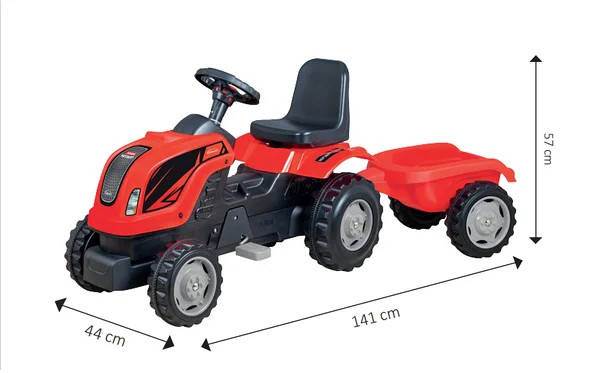 Трактор на педалях с прицепом производство Турция Очень качественный эластичный материал Большие колеса для комфортного вождения легко пересекают препятствия Механизм управления очень удобный (ребенок легко поворачивает руль) Сиденье регулируется в зависимости от роста ребенка) Цвета: зеленый и красный и синий. Подходит для детей с 3 лет. Рост ребенка должен быть в пределах 90-115см, но не более. Максимальная нагрузка до 50 кг Соответствует всем стандартам Евросоюза En-71. Игрушка не содержит вредных веществ опасных для здоровья детей, использование на 100% безопасно. Трактор в оригинальной упаковке Размеры игрушки: 57 х 141 х 44 см.