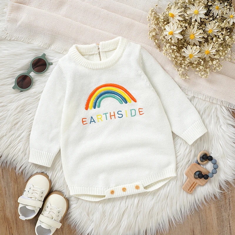 Детский трикотажный комбинезон с длинным рукавом, круглым вырезом и вышивкой