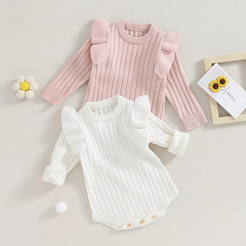 Детский трикотажный комбинезон с круглым вырезом и рукавами-фонариками