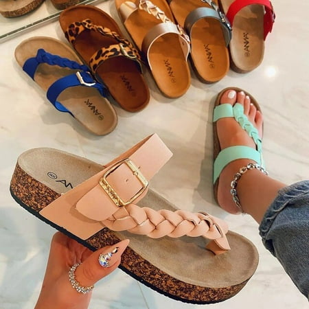 Women Sandals Flats Fashion Plait Leopard Summer Shoes Women Slippers Wear-Resistant Beach Ladies Sandals Female Shoes Size 43
