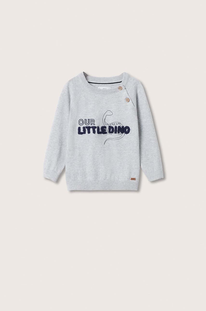 Детски памучен пуловер Mango Kids в сиво от лека материя, Сив