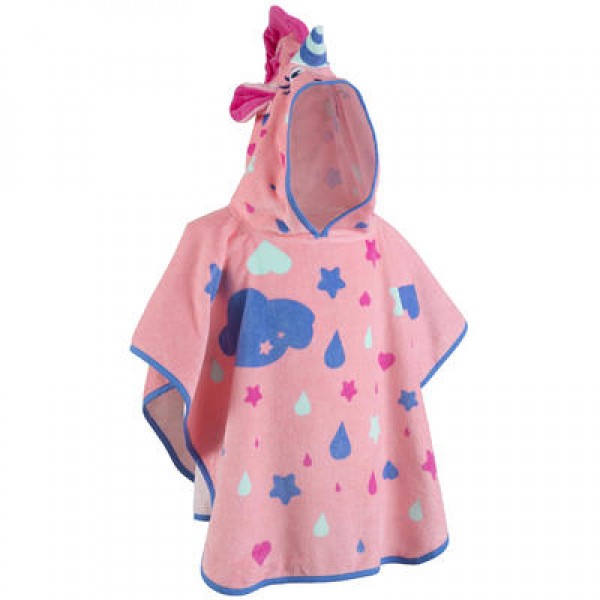 Детское Полотенце-Пончо NABAIJI "Единорог" (49 x 73 см) с Капюшоном, Хлопок Розовое One Size