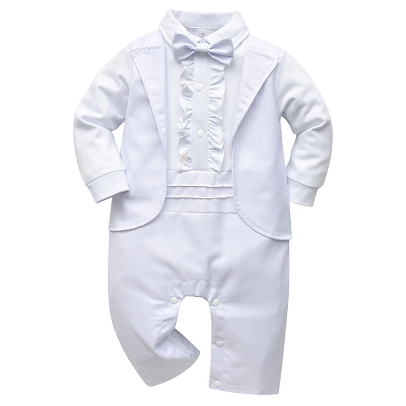 Детское белое платье для крещения малыша мальчика с длинным рукавом имитация 2 шт. дизайнерский комбинезон 3 6 9 12 18 месяцев Детский костюм