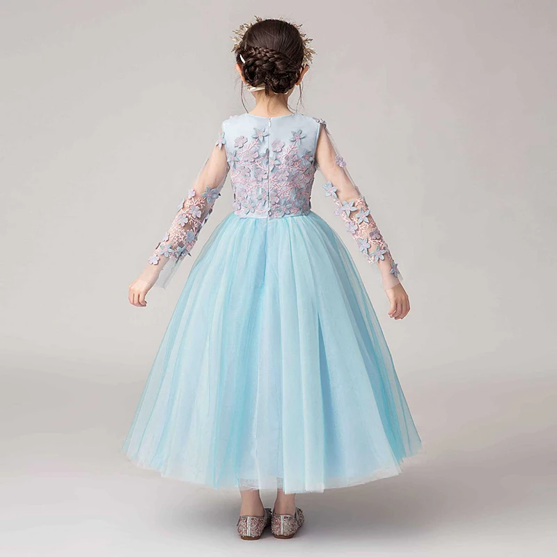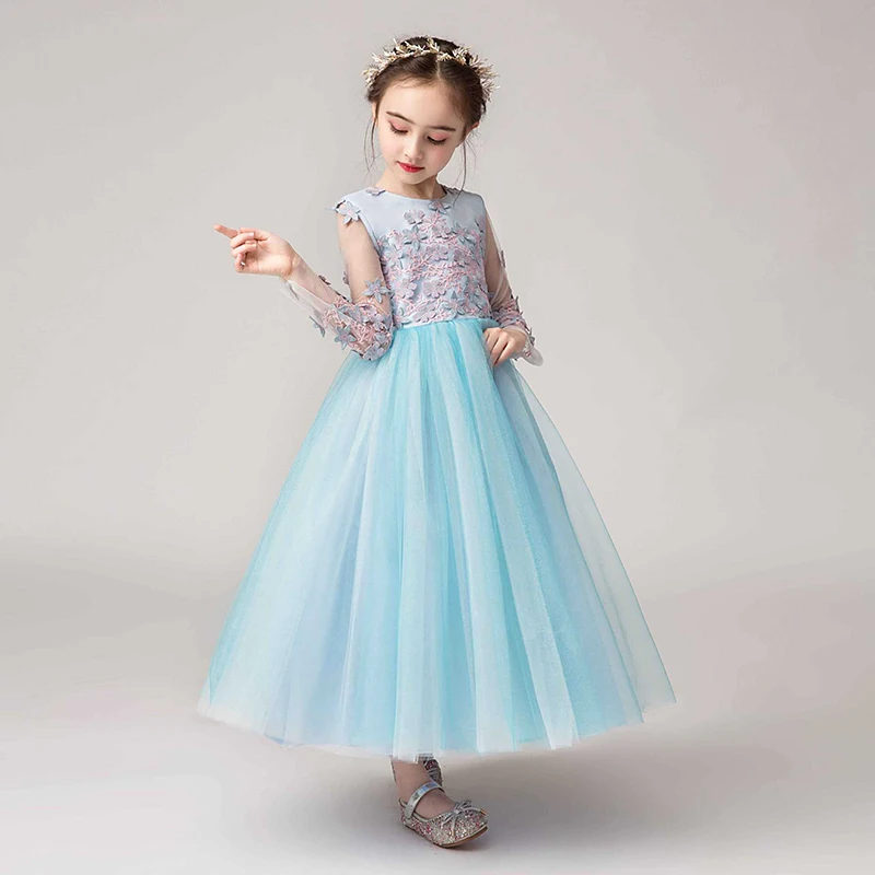 Детское кружевное платье с длинным рукавом, в европейском и американском стиле