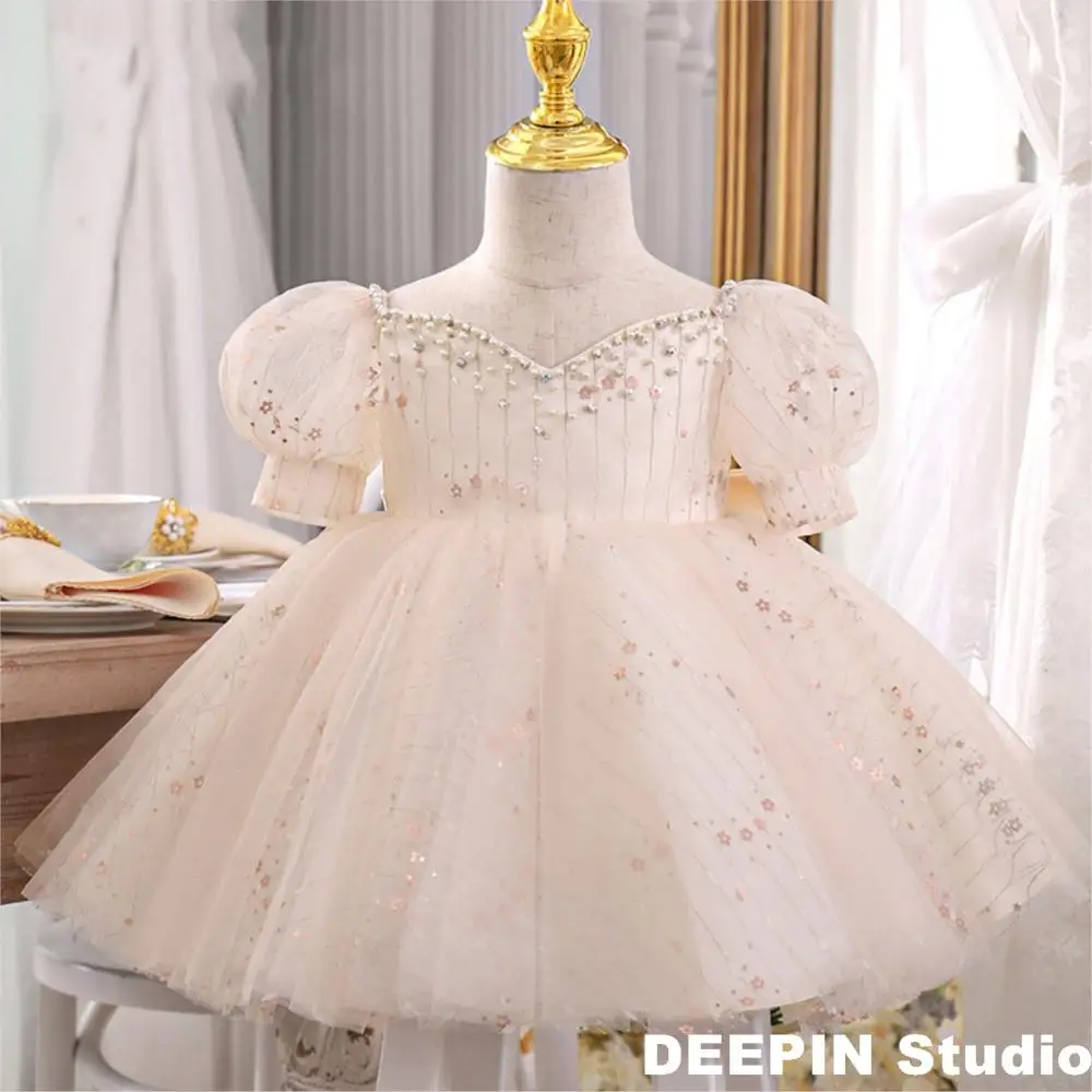 Детское кружевное платье с длинным рукавом, открытой спиной и цветочным принтом