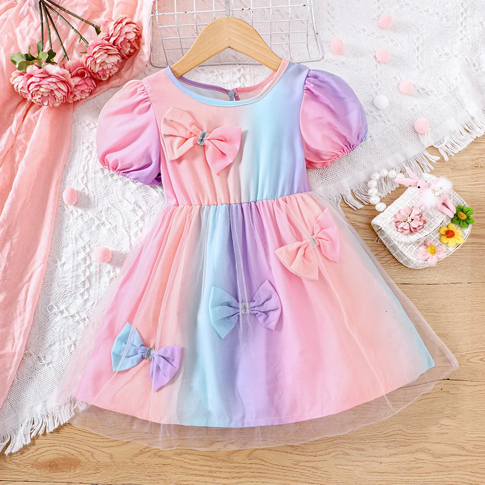 Детское летнее платье без рукавов, с радужным бантом и цветочным принтом