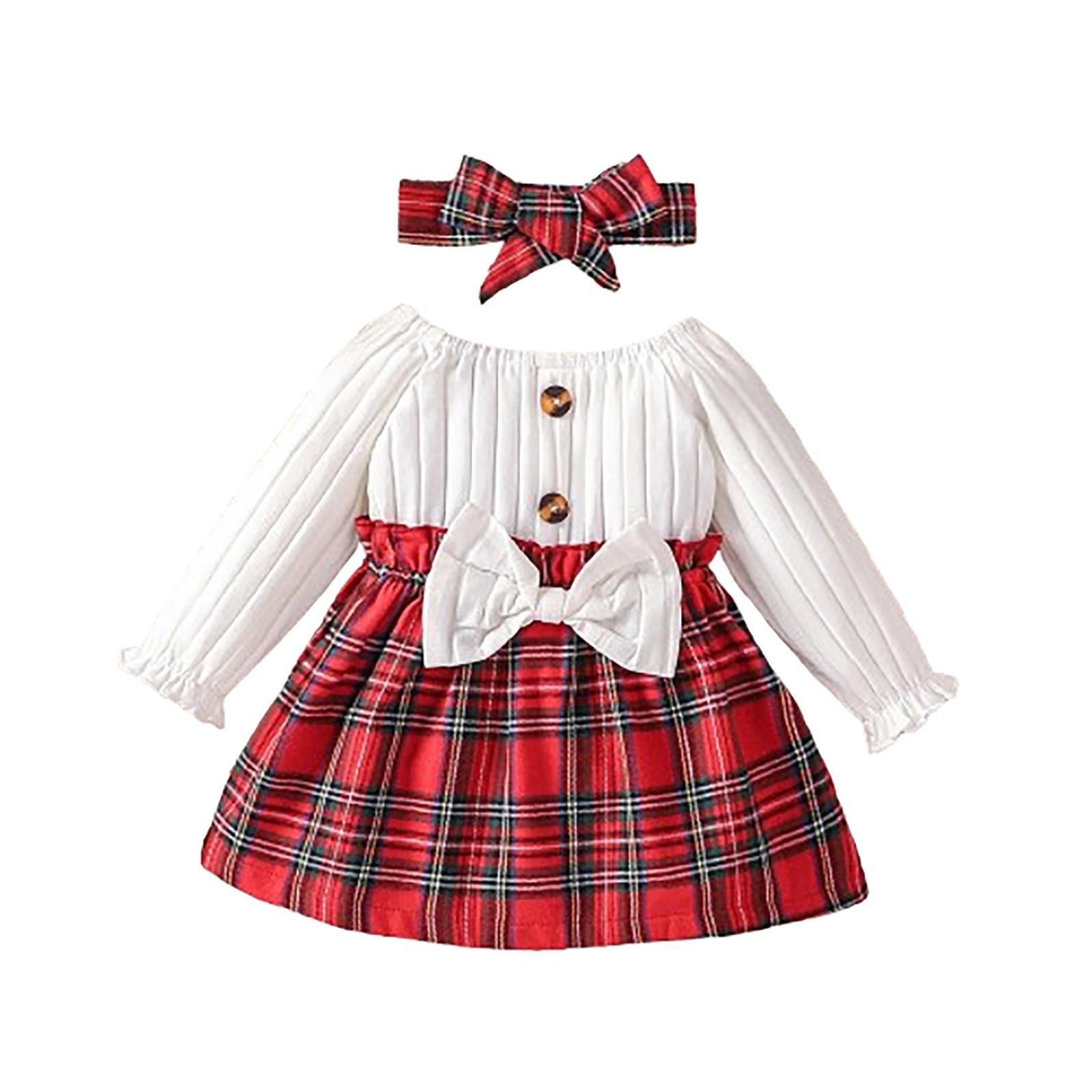 Детское платье Платье в клетку с бантом на талии Платье на одно плечо 18M красный