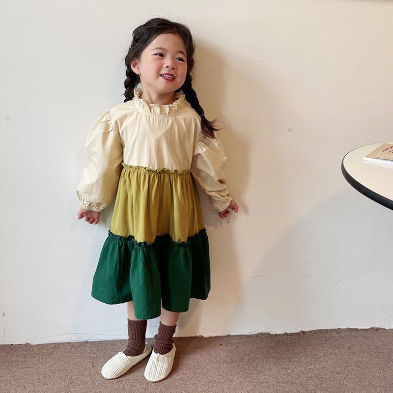 Детское платье для маленьких девочек с длинными рукавами, цветная трапециевидная повседневная хлопковая простая милая весенне-осенняя одежда для девочек 7