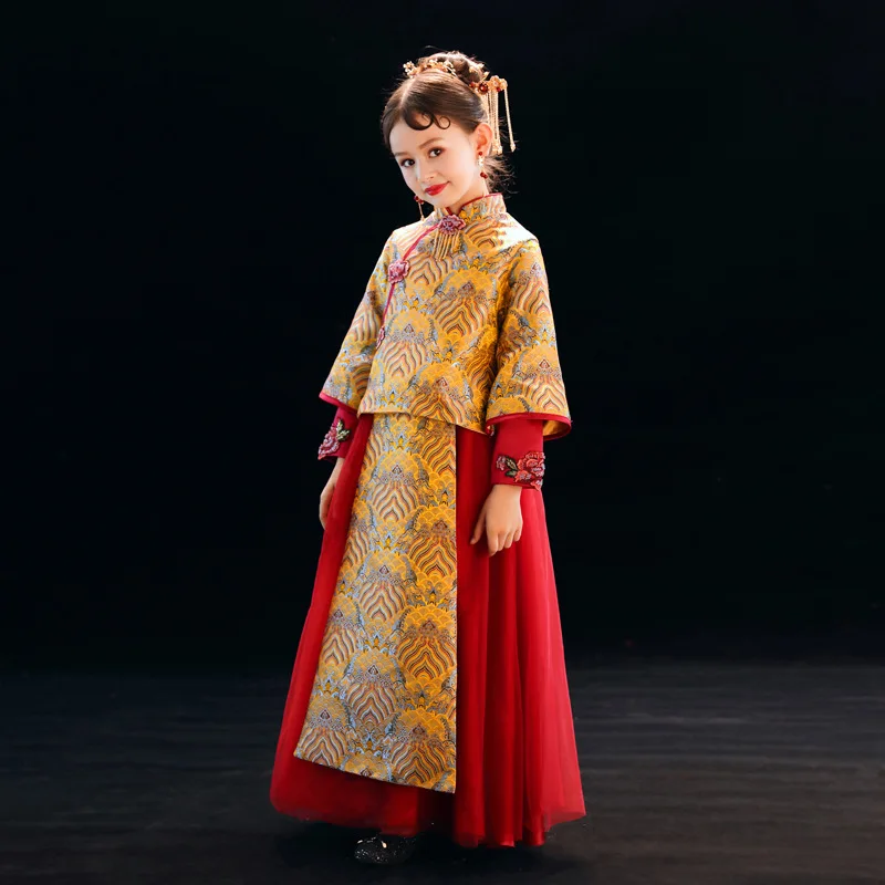Детское платье, осень 2020, новая одежда в китайском стиле для девочек, Цветочное платье для выступлений Hanfu