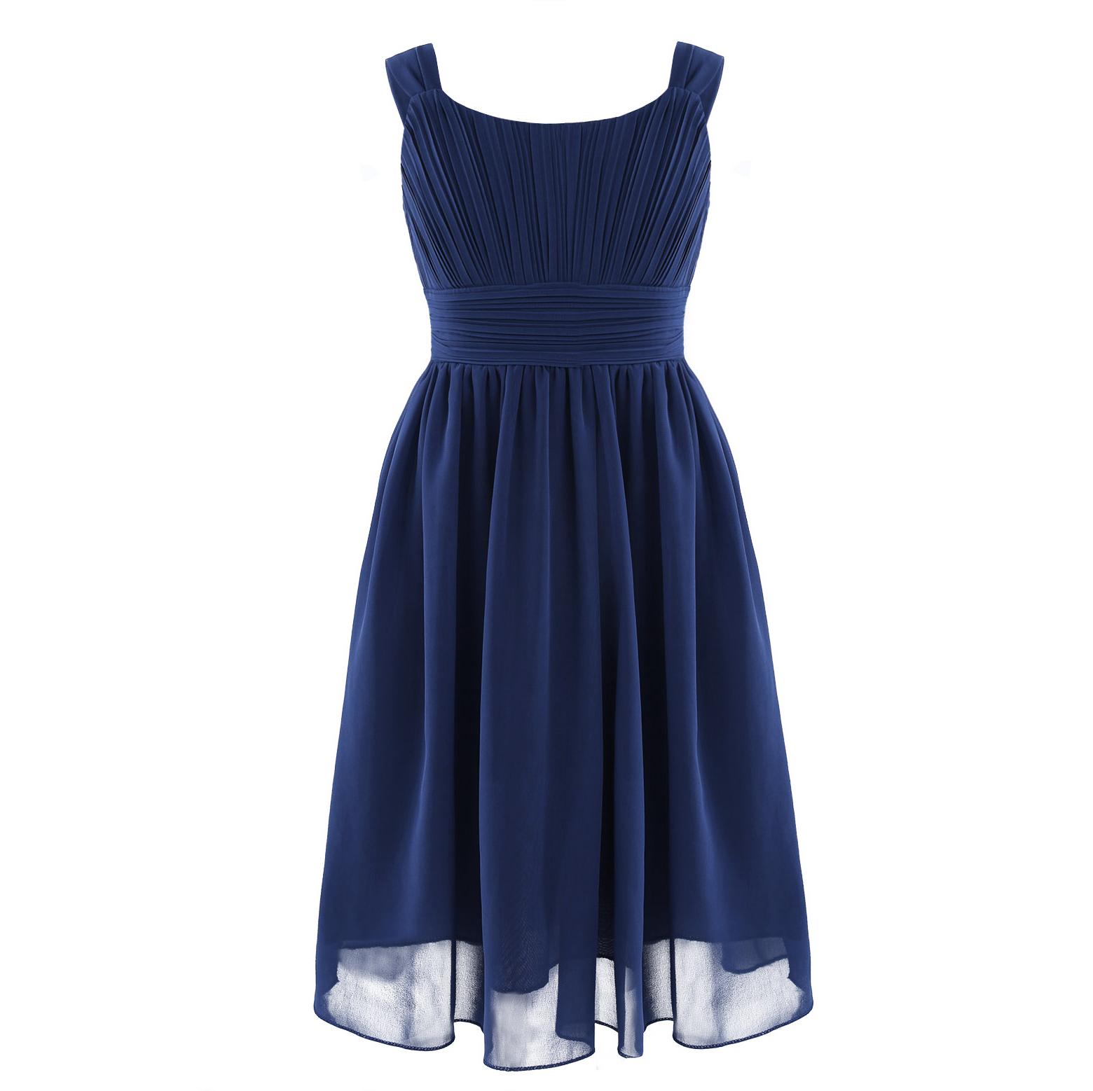 Детское платье принцессы из шифона с плиссировкой для конкурса красоты, свадебное, для подружки невесты, на день рождения, формальное вечернее платье 7-8 Years темно-синий