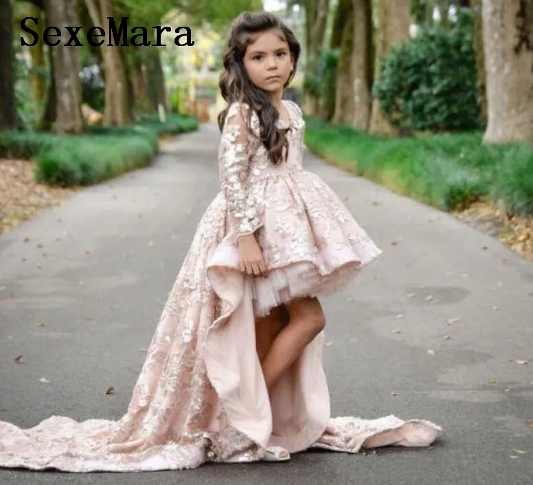 Детское платье с длинным рукавом, кружевной аппликацией и оборками
