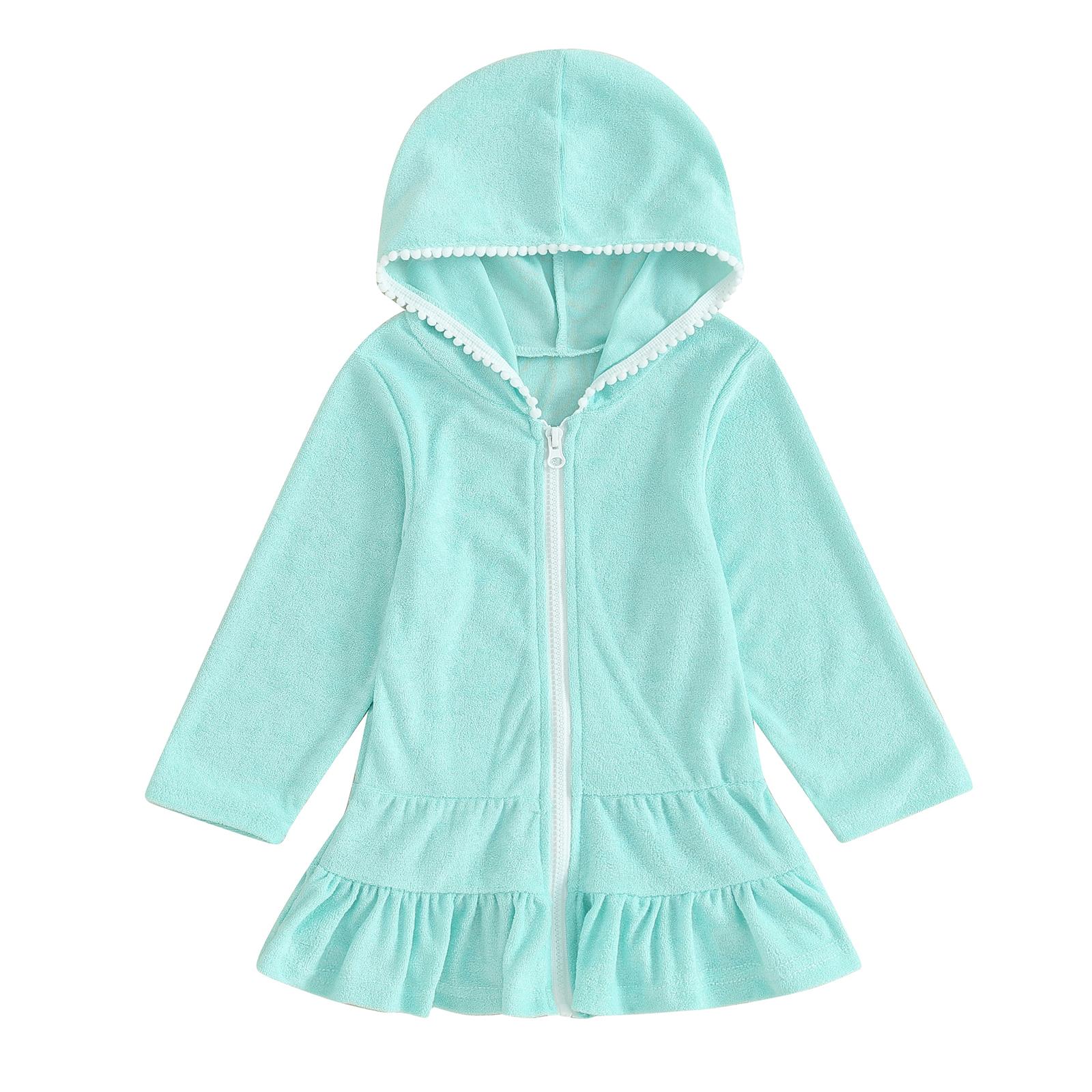 Детское платье с капюшоном для девочек, От 2 до 3 лет, 4 лет, 5 лет, 6 лет, 7 лет, 8 лет, однотонное пляжное платье с рюшами и молнией с длинными рукавами для малышей, весенняя детская одежда 7-8 Years синий