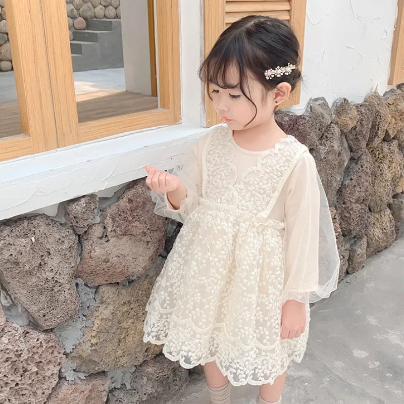 Детское платье 2023, детское цветочное корейское платье принцессы с длинным рукавом, Сетчатое кружевное платье для детей, подарок на день рождения
