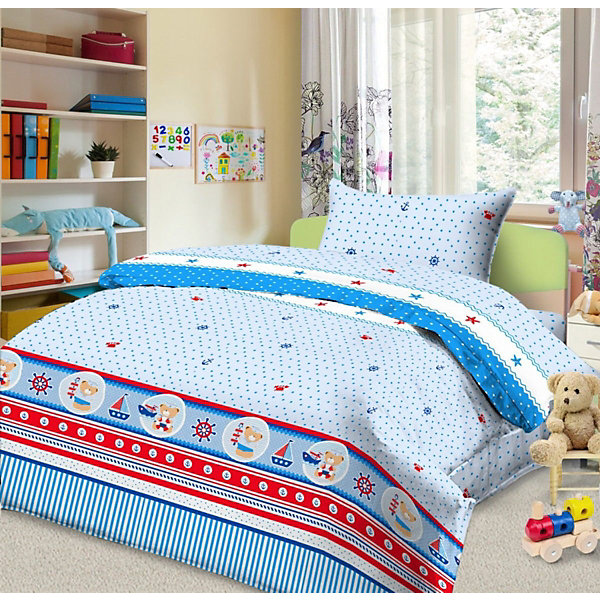 Детское постельное белье 3 предмета Letto, простыня на резинке, BGR-102, Синий, Детское постельное белье 3 предмета Letto, простыня на резинке, BGR-102