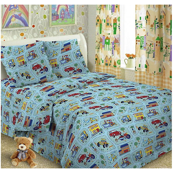 Детское постельное белье 3 предмета Letto, простыня на резинке, BGR-32, Голубой