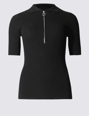 Джемпер в рубчик с коротким рукавом и воротником с молнией
