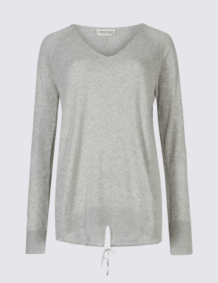 Джемпер из чистого хлопка с V-горловиной и завязками