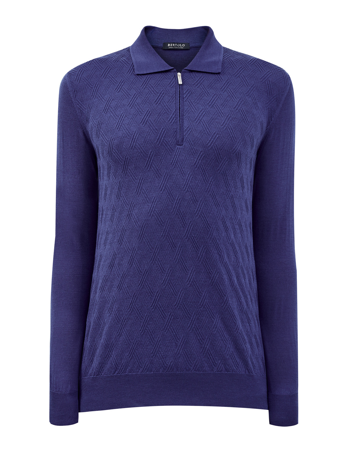 Джемпер-поло из шерсти и шелка с фактурным узором, Синий, Джемпер-поло из шерсти и шелка с фактурным узором