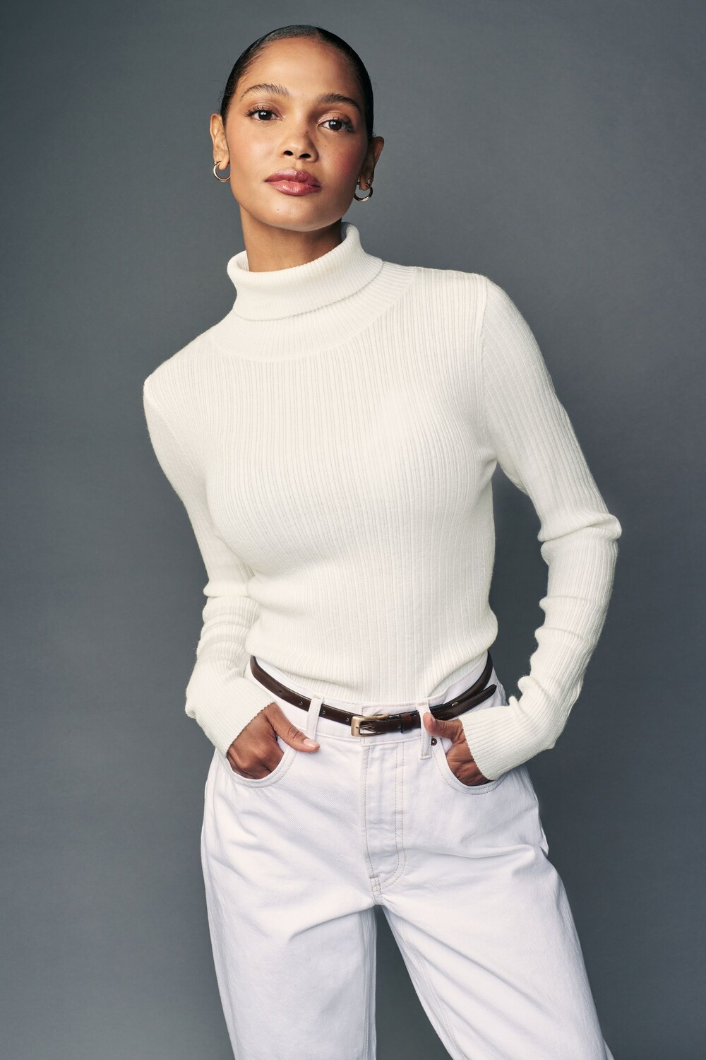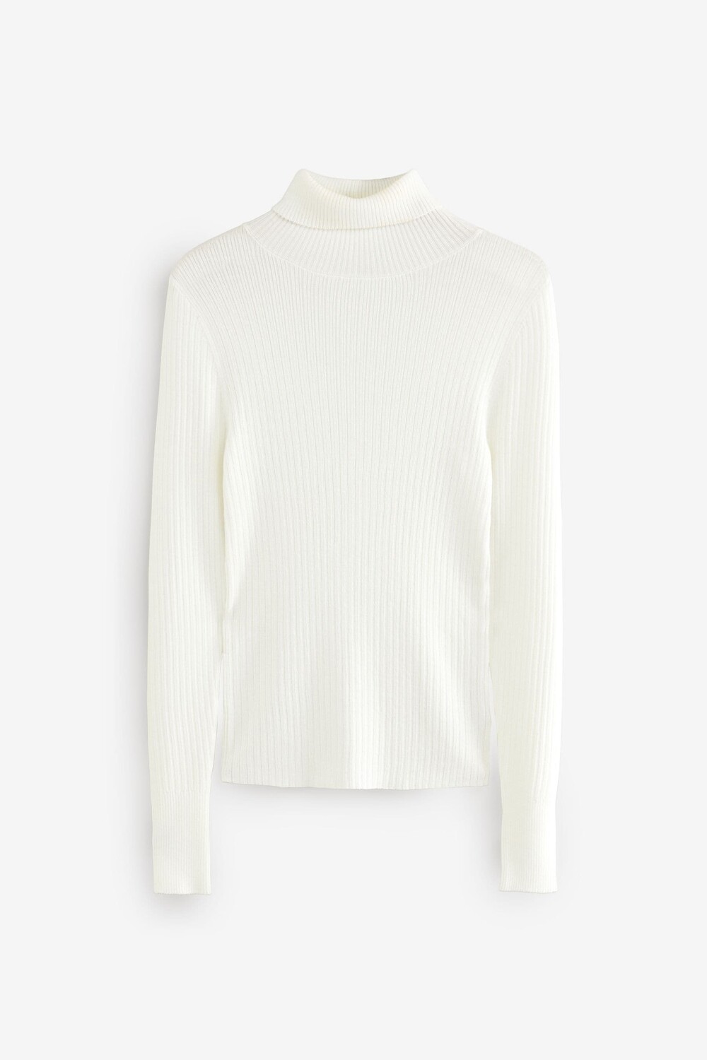 Джемпер с высоким воротником, связанный в рубчик Next, белый