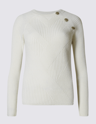 Джемпер с комбинированной вязкой и декоративными пуговицами, Овсяный микс