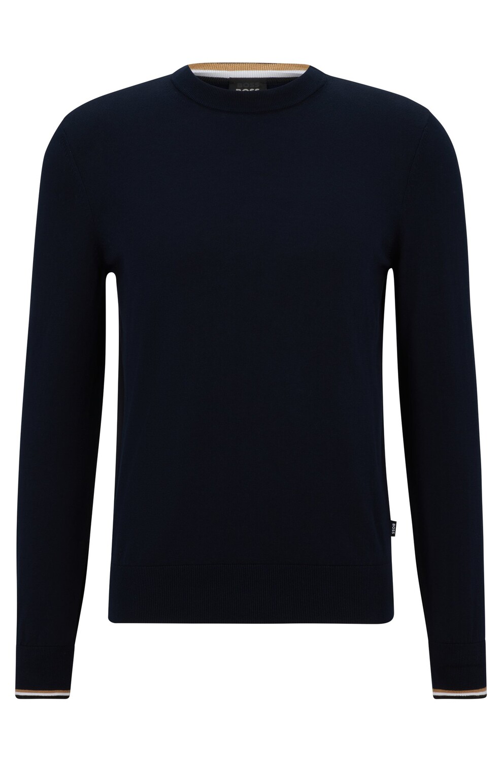 Джемпер Hugo Boss Organic-cotton With Signature-stripe Tipping, темно-синий