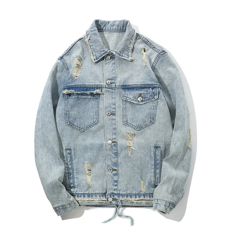 Джинсовая куртка мужская с дырками, винтажная верхняя одежда из денима, готический стиль, панк, Рейв, верхняя одежда