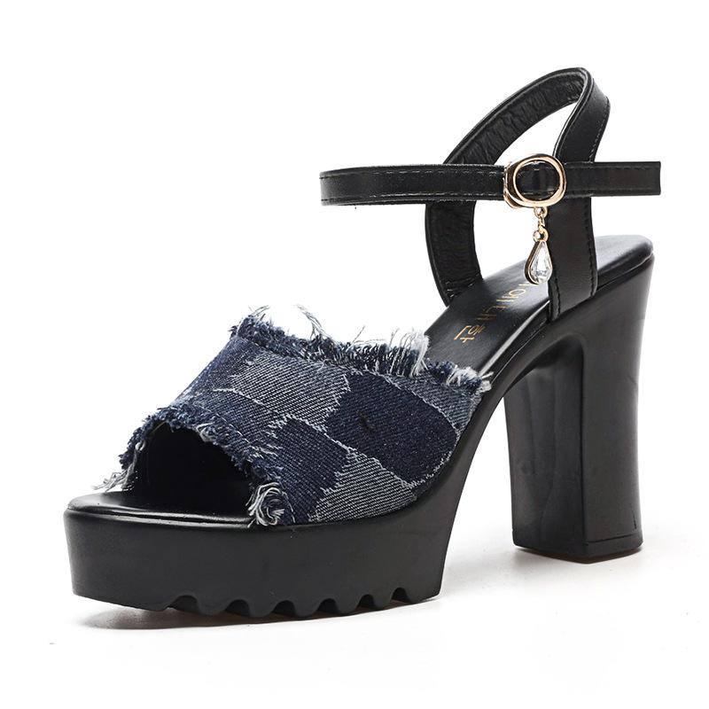 Джинсовые босоножки на высоком каблуке женские летние 2024 года новые модные тенденции односложная пряжка с открытым носком модные босоножки женские 40