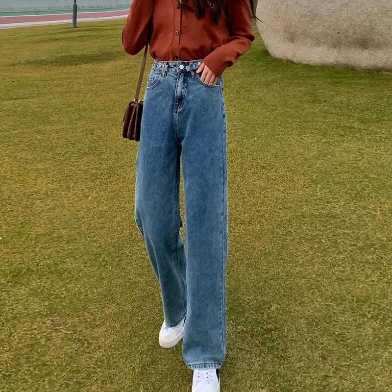 Джинсовые брюки для женщин, повседневные Прямые Штаны из денима, уличная одежда в полную длину, брюки с завышенной талией, большие размеры