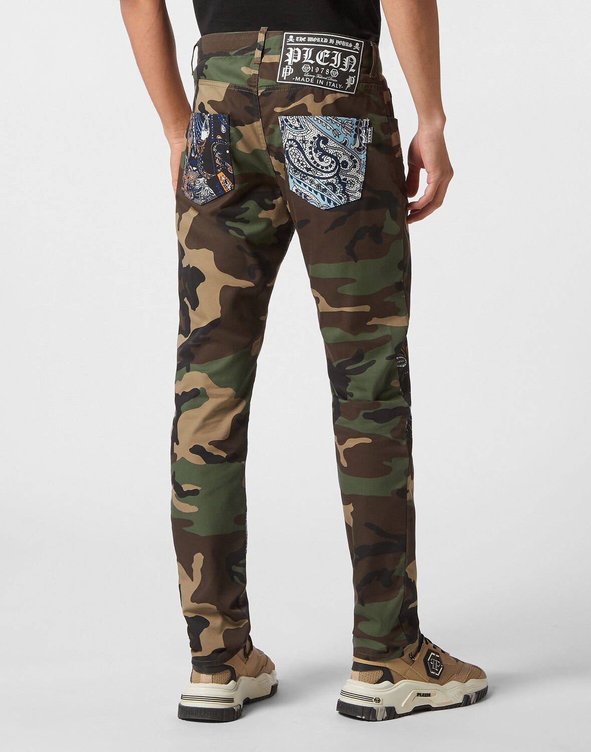 Джинсовые брюки супер прямого кроя с рисунком пейсли Philipp Plein, камуфляж