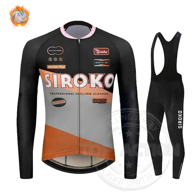 SIROKO Team Cycling Jersey Set Winter Thermal Fleece Men's Sport Cycling Clothing MTB Bicycle Jerseys Bike Uniform Ropa Hombre