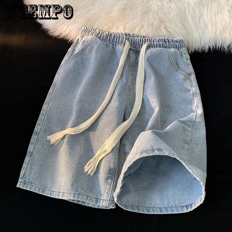 Джинсовые шорты летние тканые шорты на шнурке мужские тонкие повседневные ретро свободные большие ярды с пятью точками XL