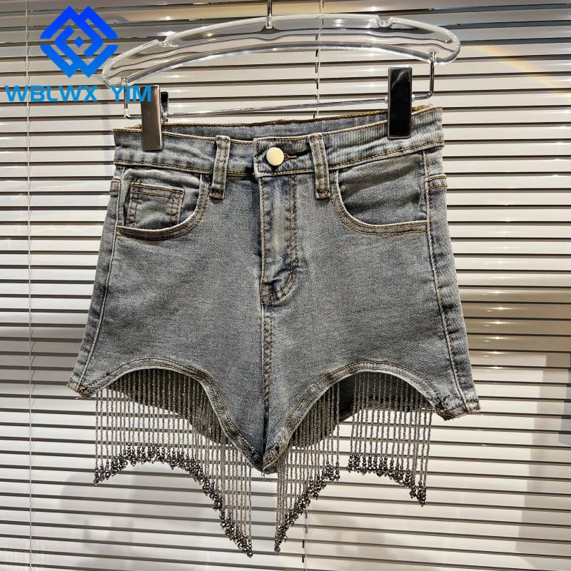 Джинсовые шорты с бахромой и бриллиантами, женские модные свободные шорты с карманами, джинсовые шорты с высокой талией, женские повседневн...