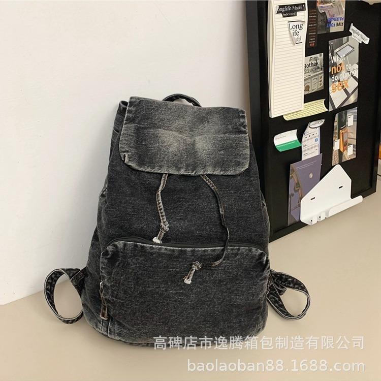 Джинсовый большой вместительный модный универсальный школьный рюкзак, новый повседневный тренд, персонализированный студенческий дорожный рюкзак чёрный