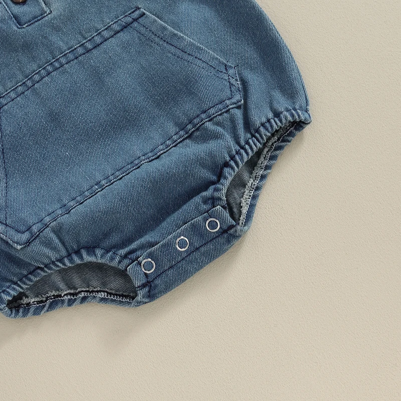 Джинсовый комбинезон с коротким рукавом и отложным воротником, с буквенным принтом