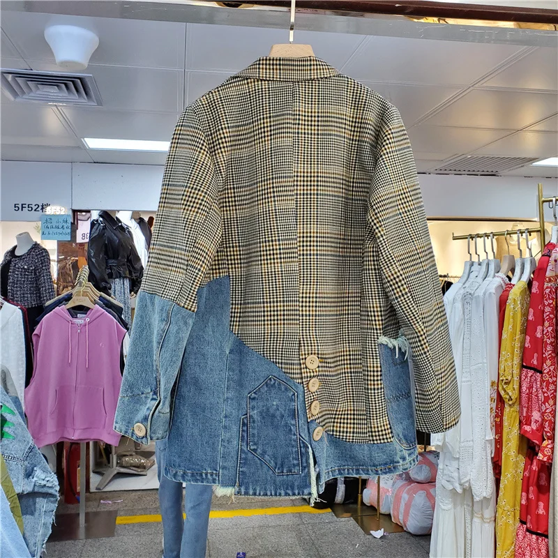 Джинсовый пиджак женский, со складками, средней длины, с карманами
