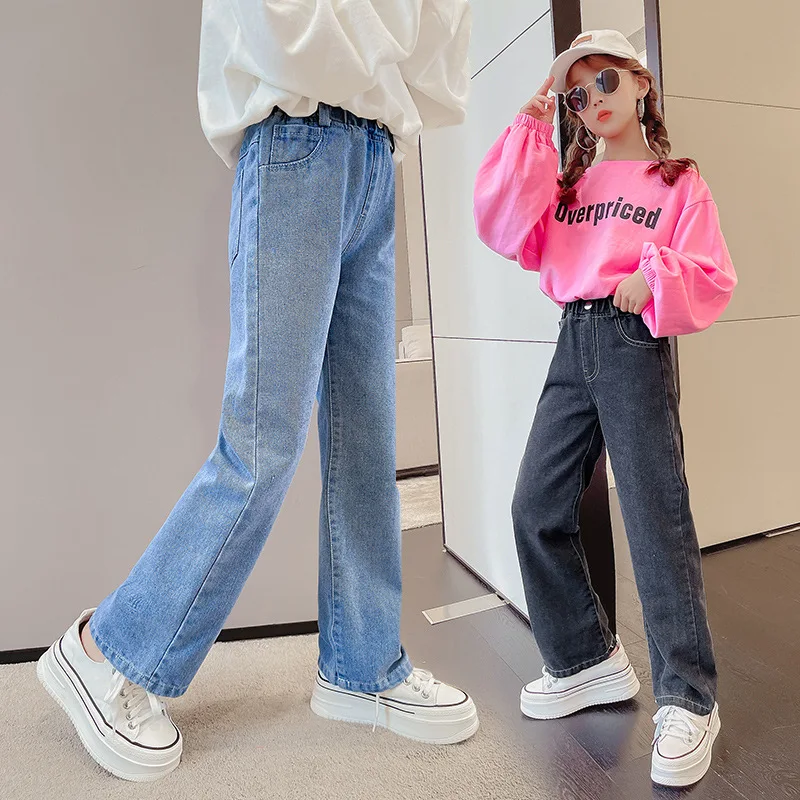 Джинсы Детские демисезонные с широкими штанинами, на возраст 6-12 лет